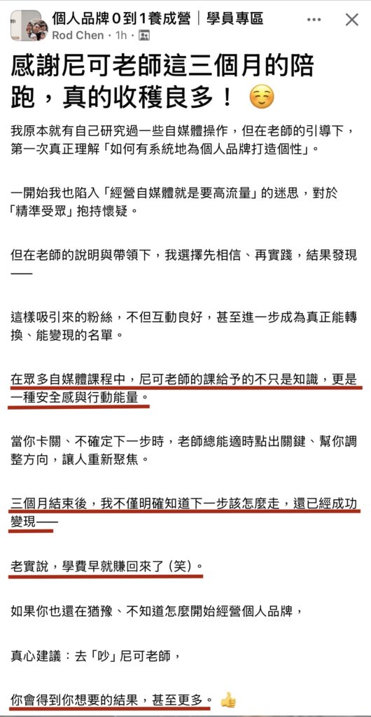 今年終於把我知識變現版圖最下層的一塊「低單價線上課程」給補齊了,我原先的課程都屬於中高單價的服務,但不是每個人都願意投資或負擔得起。九月份我推出了目前市場上絕無僅有的「線上陌生開發」課程,強調只要你會寫邀約信件,就不用再默默被動等人發現或花大錢砸廣告,牢牢將品牌主導權控制在自己手中。
